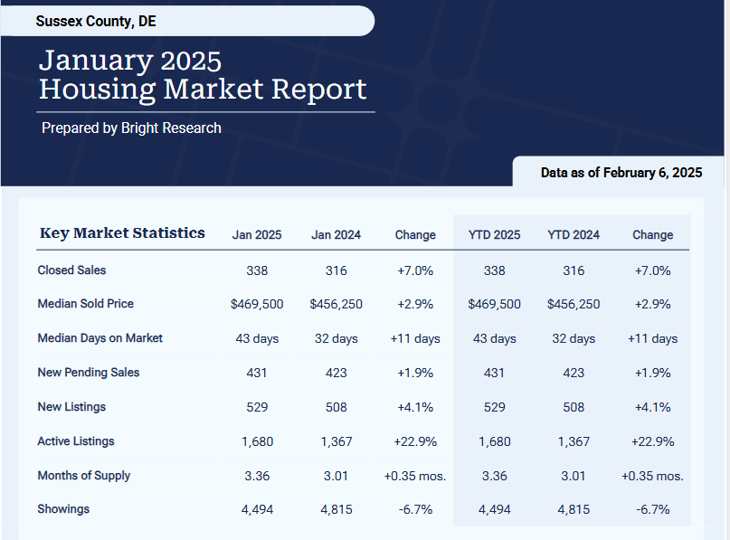 Rehoboth Beach DE is in Sussex County. Active listings have increased by 22.9% over this time a year ago, with 1680 homes for sale currently. New listings have increased, but only by a modest 4.1% over the past January. Sales have increased 7%, which is continuing a strong seller’s market. This is supported by a 3.3 month supply of inventory. However, it is still a great time to make a purchase in in Sussex County Delaware, where the median price is $469,500.